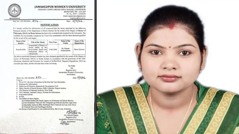 जमशेदपुर महिला विश्वविद्यालय की सस्मिता साहु को मिली पहली पीएचडी उपाधि, होम साइंस विभाग के शोध से रचा इतिहास …Read more