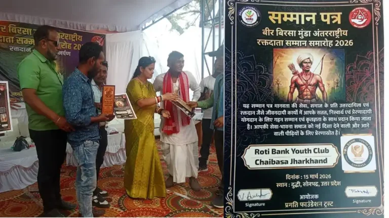 उत्तर प्रदेश के सोनभद्र में आयोजित “बीर बिरसा मुंडा अंतरराष्ट्रीय रक्तदाता सम्मान समारोह में रोटी बैंक यूथ क्लब चाईबासा को किया गया सम्मानित …Read more