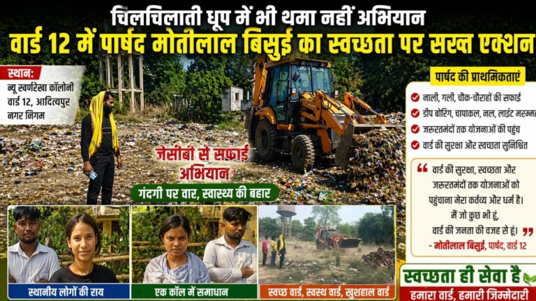 आदित्यपुर : धूप की तपिश में भी जमीनी जंग, वार्ड 12 में पार्षद मोतीलाल बिसुई का स्वच्छता पर बुलडोजर एक्शन, गंदगी पर करारा प्रहार, जनता ने कहा, अब दिख रहा असली बदलाव… …Read more