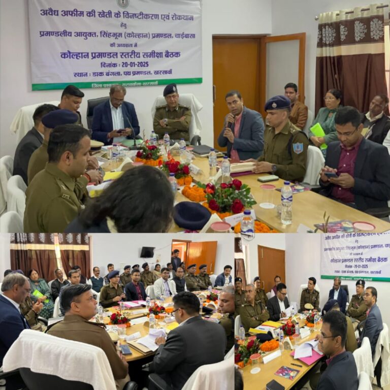 खरसावां: अवैध अफीम की खेती के रोकथाम के निमित्त प्रमण्डलीय आयुक्त, कोल्हान की अध्यक्षता मे बैठक सम्पन्न, सरायकेला- खरसावां एवं चाईबासा जिले मे अवैध अफीम खेती के विनष्टिकरण कार्य पर जताया संतोष,विभिन्न माध्यम से किसानो को अन्य वैकल्पिक खेती के लिए प्रेरित करने के दिए गए निर्देश…. …Read more
