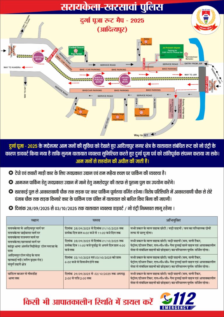 सरायकेला : दुर्गा पूजा पर यातायात नियंत्रण: आदित्यपुर औद्योगिक क्षेत्र के लिए रूट चार्ट जारी, 28 सितंबर से 3 अक्टूबर तक नो एंट्री लागू… …Read more