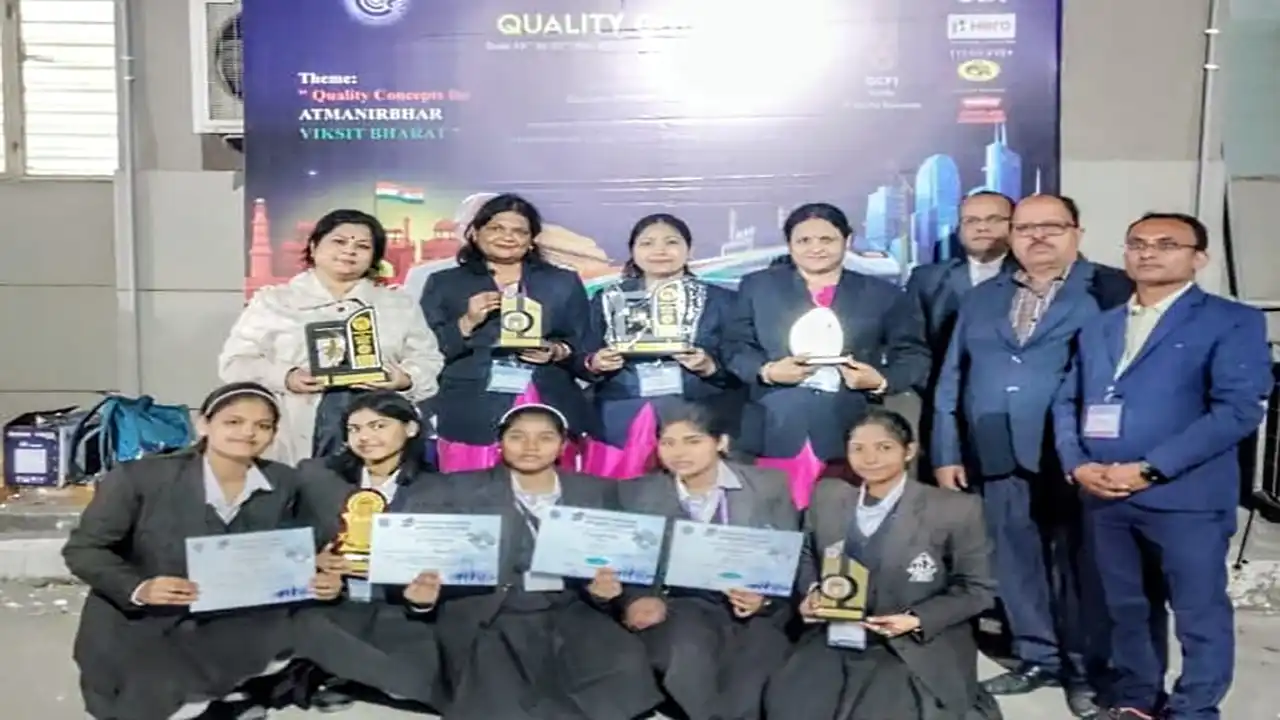 जनसंवाद, जमशेदपुर : छोटा गोविंदपुर स्थित विवेक विद्यालय ने एक बार फिर राष्ट्रीय स्तर पर जमशेदपुर का नाम रोशन किया है। 39वें नेशनल कन्वेंशन ऑन क्वालिटी कांसेप्ट 2025, ग्रेटर नोएडा में आयोजित प्रतियोगिता में विद्यालय की छात्राओं और शिक्षिकाओं ने शानदार प्रदर्शन करते हुए 2 पार एक्सीलेंस अवार्ड एवं 4 गोल्ड अवार्ड अपने नाम किए। यह प्रतिष्ठित आयोजन क्वालिटी सर्कल फोरम ऑफ इंडिया (QCFI) के दिल्ली, लखनऊ एवं ग्वालियर चैप्टर द्वारा आयोजित किया गया था।